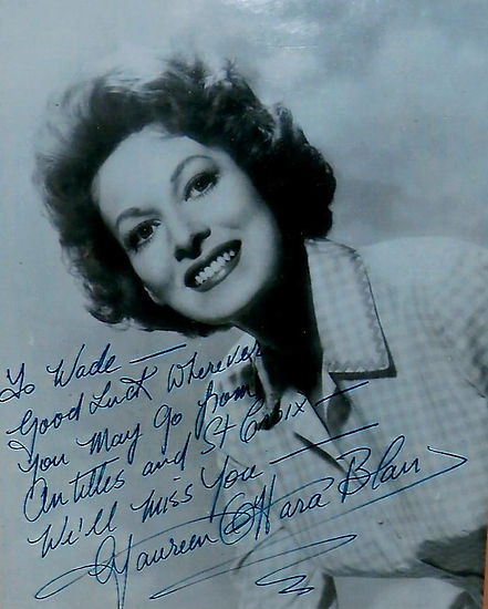 Maureen O'Hara Blair thanks Mellow Hawks of Charlotte Amalie High School who performed for St. Thomas party, Mellow Hawks, director Richard Callwood (rear center) looks on.